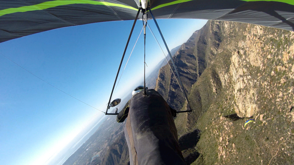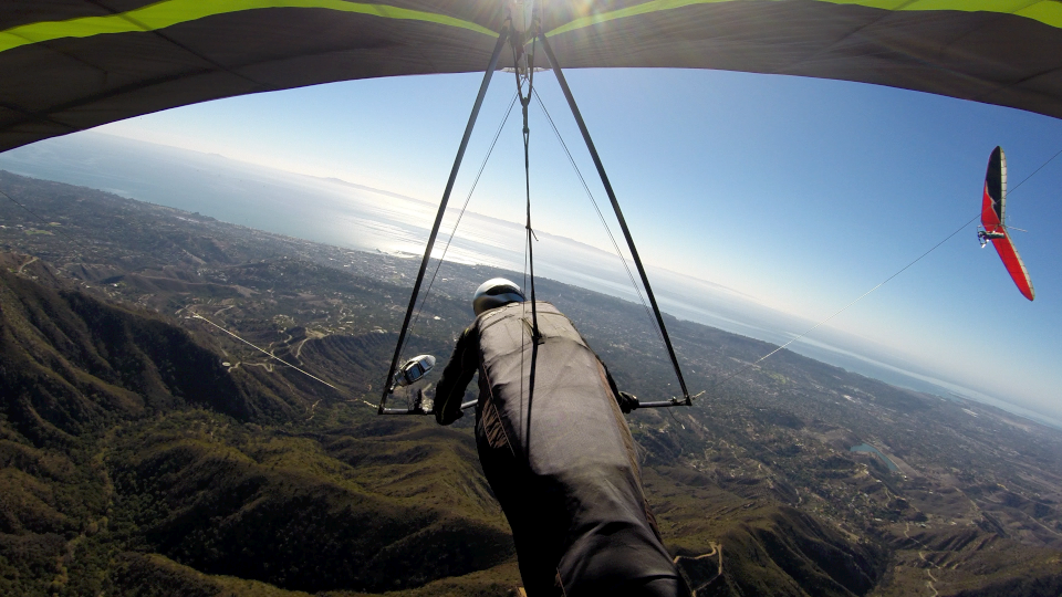 Lots of pilots on the short course today. After flushing on the early launch, I drove back up and left Skyport after the Eagle crew. Got my strongest thermal ever at Skyport - up to 4,360 feet - and bounced down range to Castle Ridge in the high threes and low fours. Air was a bit uneven, so I left the mountains and flew to Padaro Grill. One and a half hour second flight.