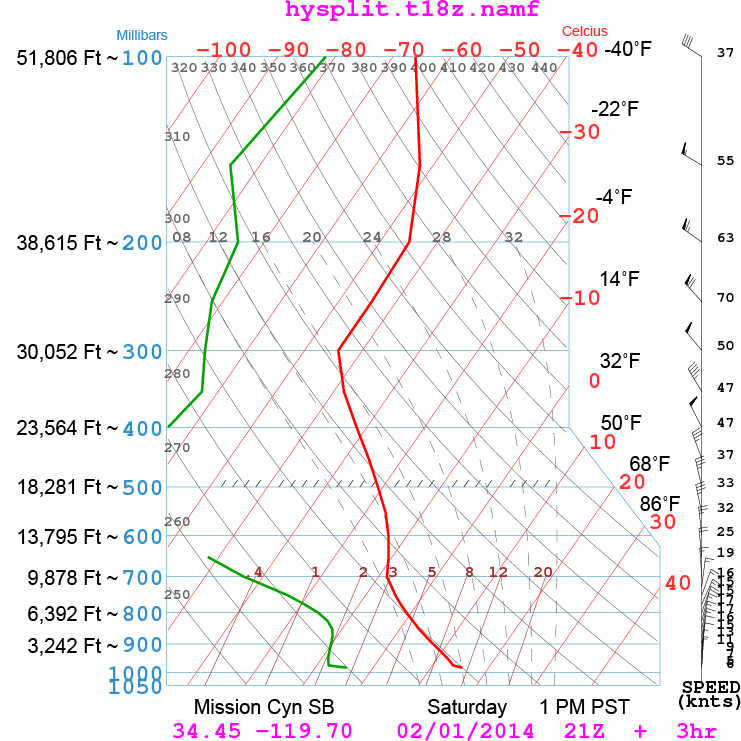 Looks like I'll throw in the towel for Sunday. It was clear at sunset, but the satellite loop shows a thickening mass of high clouds just off Point Conception, so we should be under an overcast well before dawn. The 6K temperature is low, but the surface temperature will also be cold in the morning. The lapse rate looks much better by 1PM, but by that time, I expect we won't have much if any sun shining through.