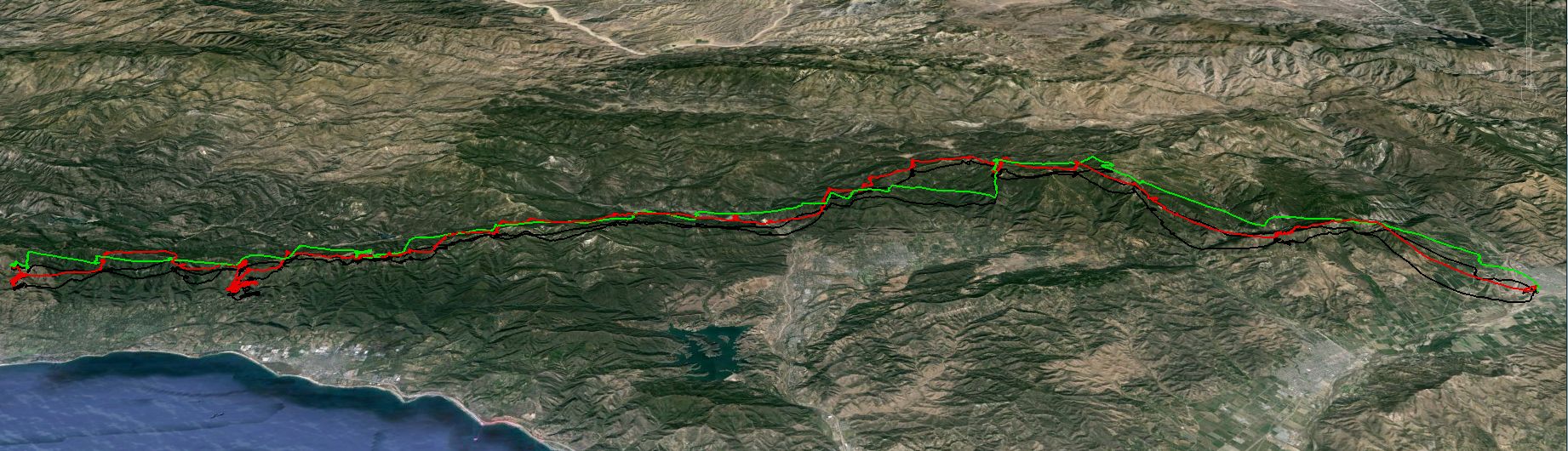 Me (HG), Marty D. and Matt from UT (both on PG) all landed within a half mile of each other. Matt and Marty team flew. I was mostly on my own except for a few turns together with Max by the powerlines and again by West Divide (I think). It was blowing 15 to 25 from the East in Fillmore all came to a stop at Santa Paula Ridge. A large number of PG crossed the pass and landed at Nordhoff HS including SD with his second tandem of the day. Max made some mind-blowing low saves and landed by some restaurant several miles past Nordhoff HS. Too many details and stories to tell. I'll just edit my video and hopefully I'll get a bunch of track logs to add to the track animation.