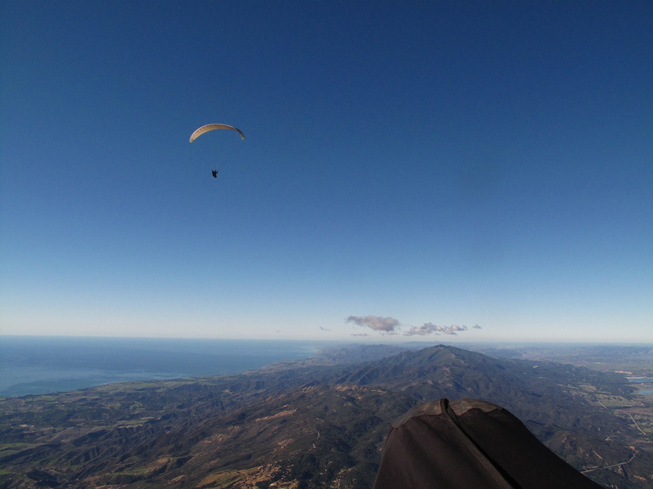 good clean fun with timmay and neil struggling into the wind west of san marcos pass and high fiving the climbers at lizards mouth. the rest was a fun, beautiful , downwind, float with timmay, neil and tavis. the new artik 4 could be flown by a baby and glides like a sailplane. almost makes it too easy ;)