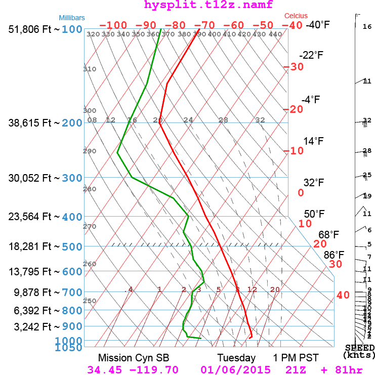 By Monday, a Santa Anna develops to break the inversion and flights from Ojai back to SB look possible. The lapse rate continues to strengthen on Tuesday coupled with more east wind.[attachment=0