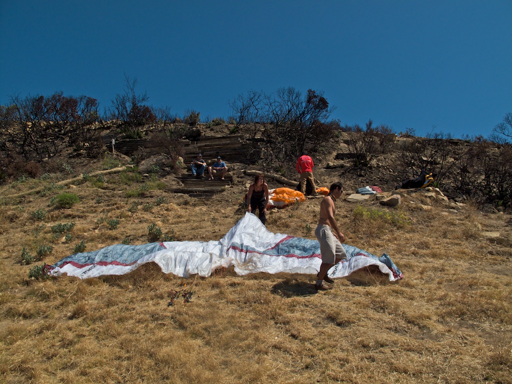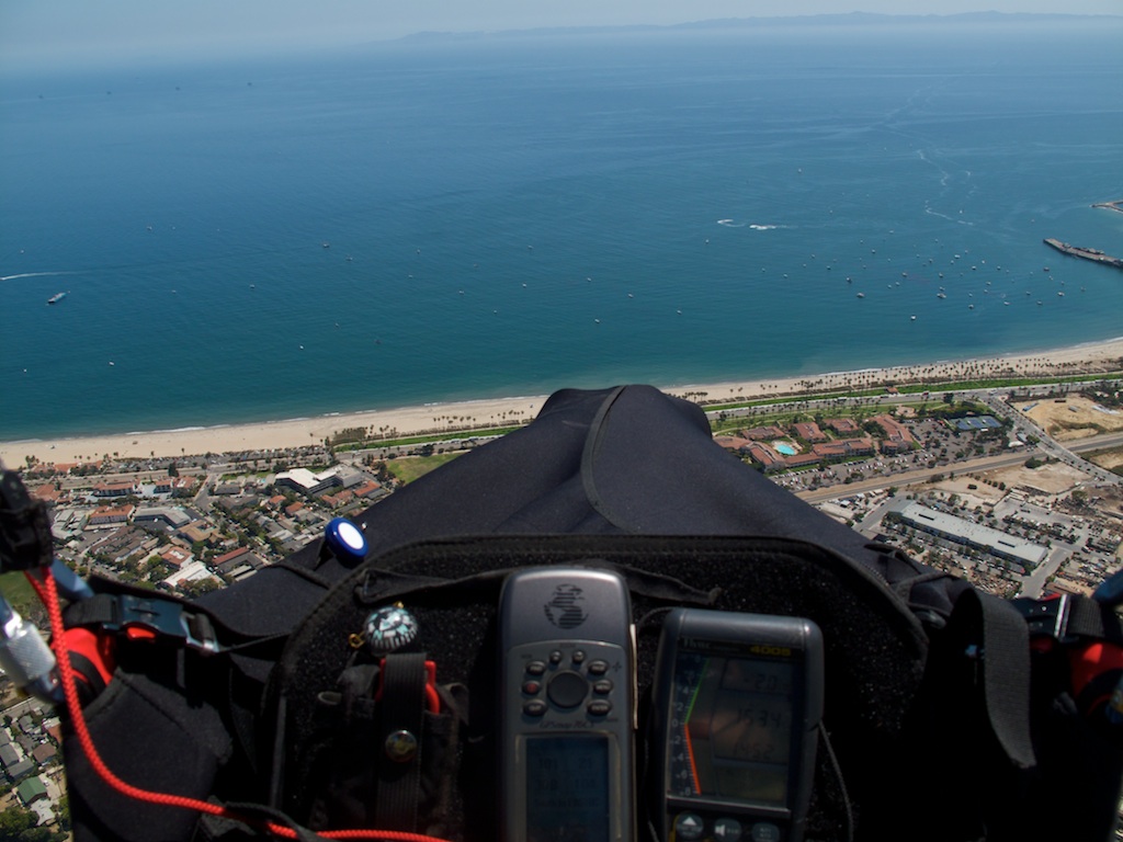 Dude!!! what a great day of flying (compared to the last 2 months of my flying). Like Kabir said, I was able to climb out probably 200 feet over launch, headed to the thermal factory and found no love, so crossed the power lines for the antenna farm and found 3 hawks that showed me a nice thermal. Flew around for 1 hour 20 minutes with Kabir in that area. Saw cumies over Santa Ynez peak, and maybe in the White Ledge area, but nothing too eye popping over our area. Just a few teasers. Wasn't able to get above 3000. I was looking at the bottom of Kabir's new pod most of the time I looked up. Man, that pod looks suuuhhweeeeeet!. I pointed my glider towards the beach and was getting a great glide, but it wasn't in the bag, so I headed to Parma to meet with the Posse. Rob and Lee were specked heading out towards the city, but landed at Parma to get back up for some more flights. Nice warmup before we head off to Utah next week. Skyport looks great. Thanks again to all who contributed. lots of sticks looking for a line to grab on to though.