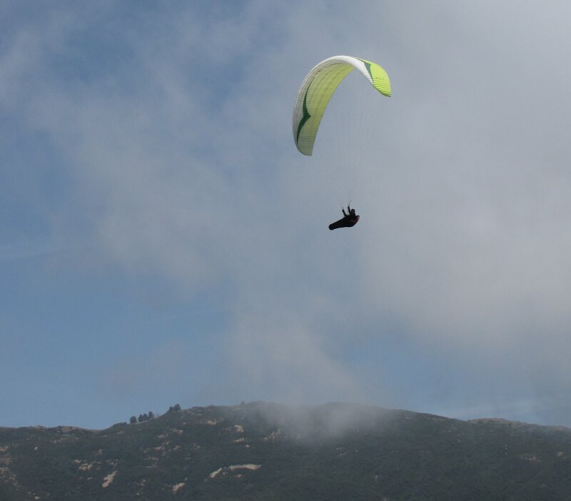 2 much fun! Hardly any wind to speak of, maybe SE 3-4 - if that. I don't like to give up the high ground if I don't have to, but being that cloudbase was below 3k for most of the day we didn't have a choice other than to run the range using only the lower foothills. I have to admit, it made it more interesting, however, one wrong move could have you calling for retrieve early. We all made it, but not without a few VERY low saves. Kabir and I headed to East beach and Bob P. generously picked us up. Several of us met at the Habit for post flight treats and good trash-talkin'