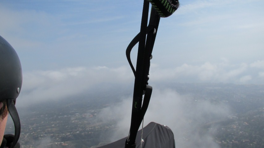 piled in the fly above all people mover and got up to launch with many clouds forming below us out front. doug e fresh launched first and climbed up easily and headed over to the sun at RR where he got to a higher cloudbase, maybe 3500 or so. master bader and this cracka beat bushes below launch for a bit before gittin a hundy over and heading to RR. never got much above 3300 but the whispys were way cool and fun and headed to cathedral in a headwind. spent most of my flight playing over there in the shade trying to get at least 2500 to try to go one way or another. sung some whitney houston songs to the hikers on inspiration point and finally got up to the white room and headed back to the knob under the tit. climbed up the tit slowly but cloudbase was filling in quickly and lowering. made one more play for RR but got rejected in all the lowering shade. one more fatty at the holy hills and made sure the compass was pointing south as i tasted the good stuff. popped out near parma above most all the white marshmellows around and hit that whitney high note!!! uhhhhhhhhhhhhh, good clean fun!! seems the cloudbase soon was solid about 2200 up and down the range and almost all the way out to the coast flushing everyone.