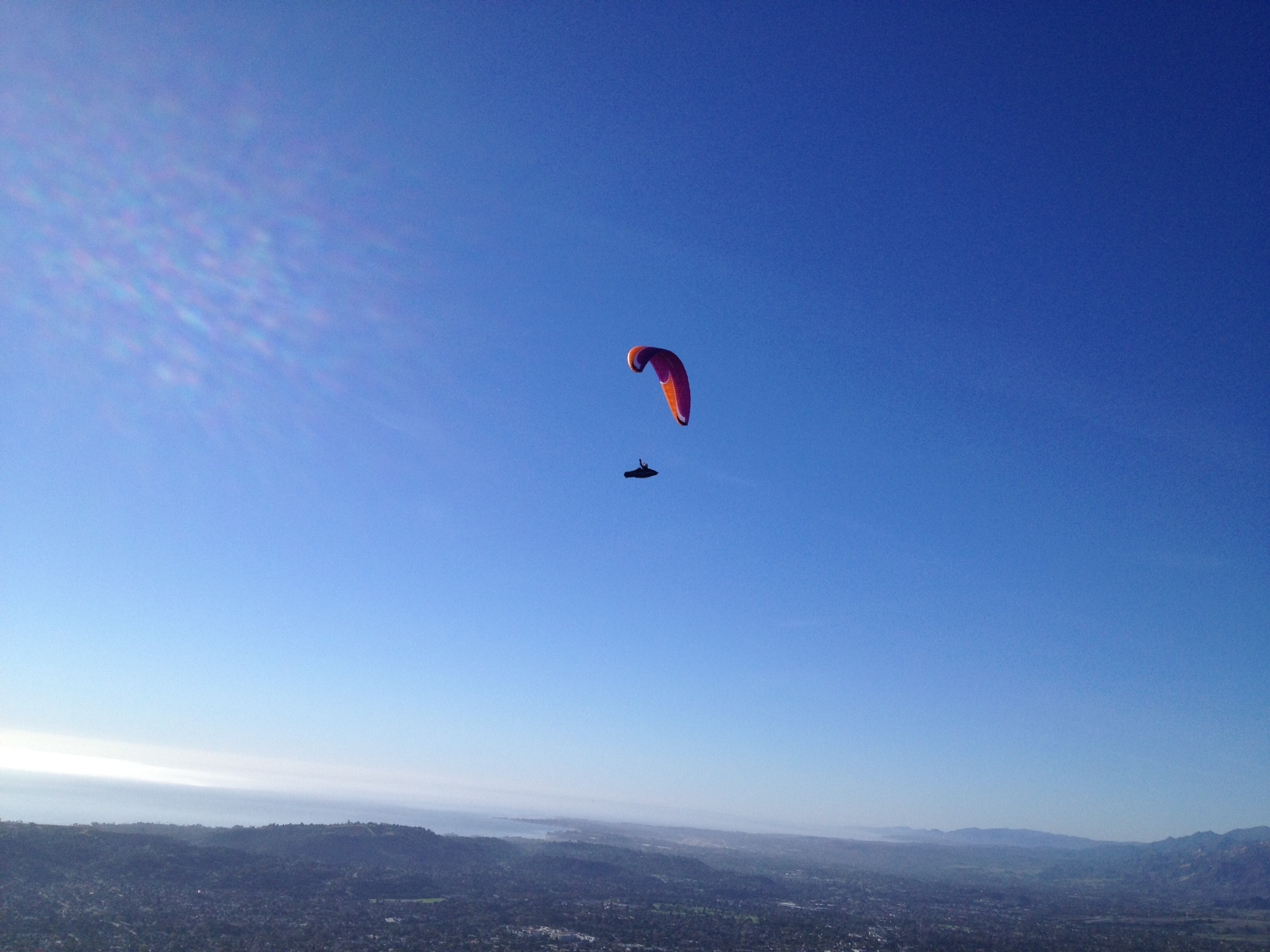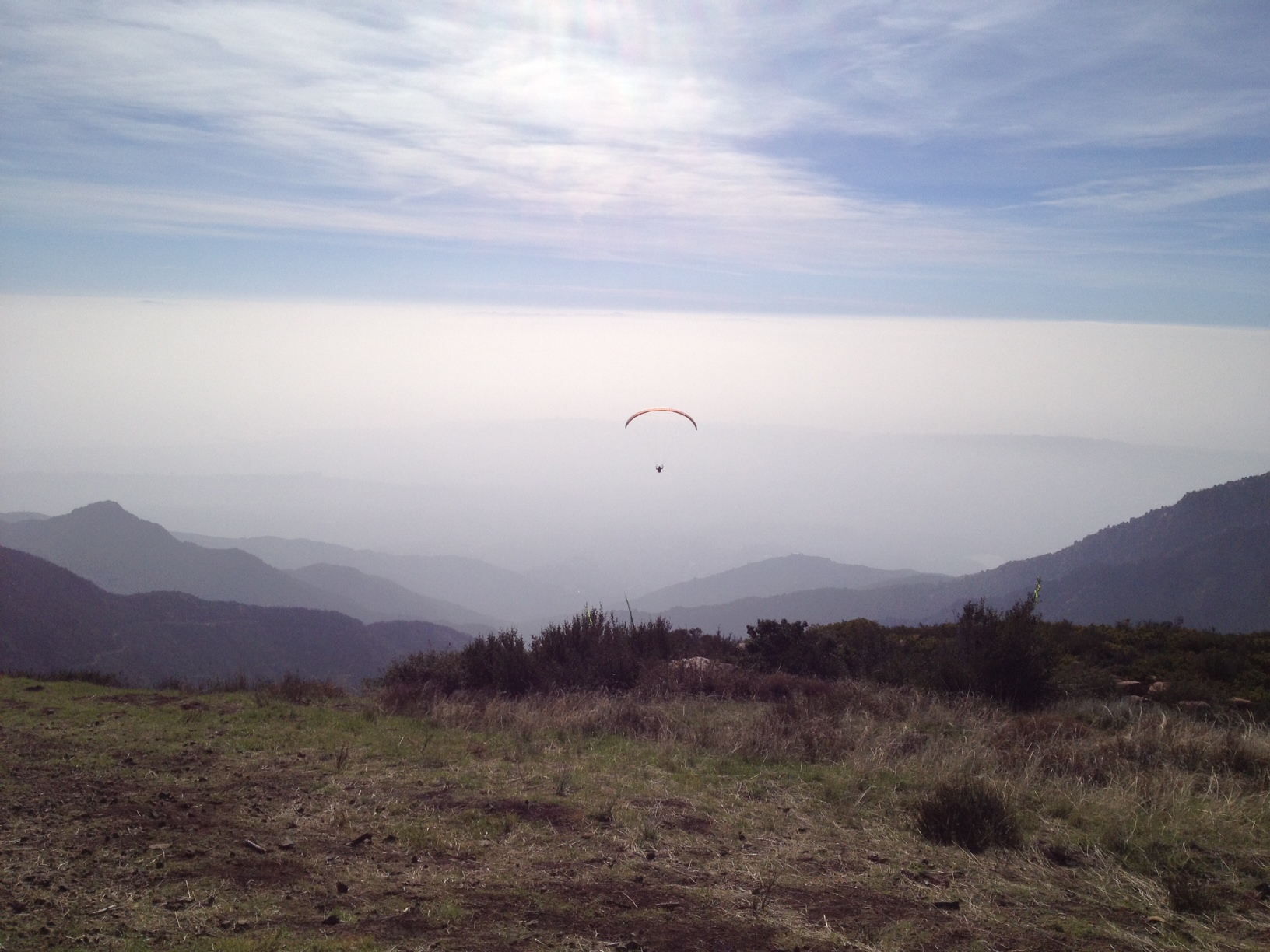 didnt expect much after a couple days of sledders. but the mountains were much more crisp on the drive up. caught a ride with brian, cort and max to ej bowl. Rob and Marge were hucking students at eliminator. i got airborne about 12:30 and Rob soon joined me at la cumbre on his new rig. it didnt have many lines and went like a mofo. i guess the new paragliders are like a good vicoria's secret catalog, less is more. we touched 4800 at la cumbre for our high of the day. i chased him down to vor and back. it was windy and scrappy at vor and we were almost to the lower rock pile before getting one back to 3500. we had to wait for the slow climbs to come through at most spots and made the return leg between 3000 and 3600 but bobby was always higher on that sexy thang. we hit 3600 at the thermal factory and had a nice float out to the beach with willy, harrington, and JR. gorgeous, cream puff day out there!