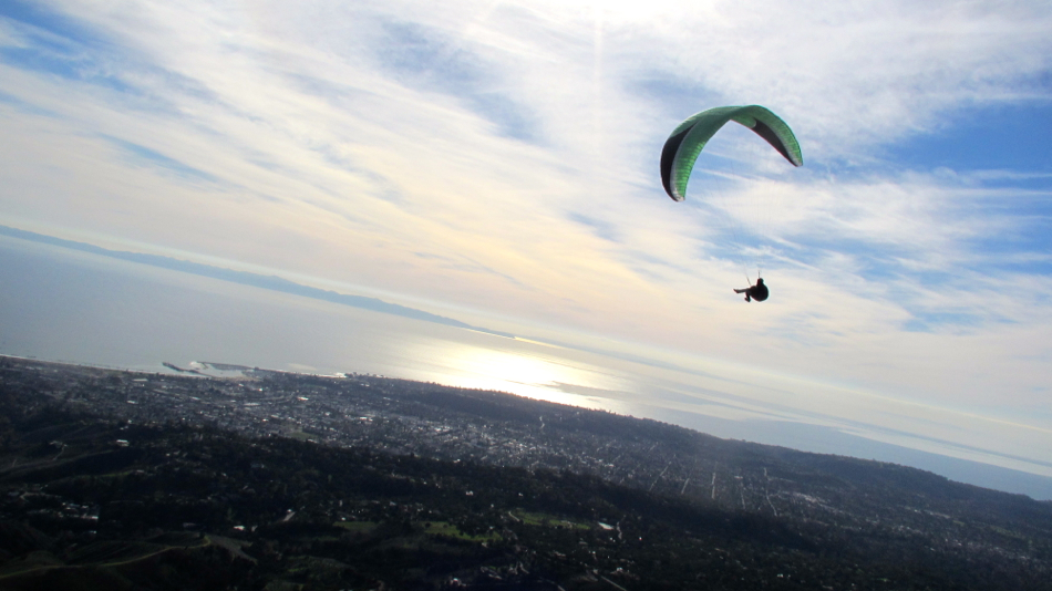 9 headed up in the Partyvan(trademark!) to scout the Back of the Rack hg launch and a nearby knob for some high ridge soaring. Willie flew his hg down to Parma but we weren’t sold on launching- it was clocking high teen SE gusts. We checked Ejs next but again, too windy. At sky port it was weak in and we decided to ‘huck for luck’ on a shortest day/shortest flight challenge ;) Surprisingly, most were able to hang @ the antenna farm for as long as we liked- up @ 25+ in smoothies with room to fly around. Michelle and I took a nice glide seam out to E Beach from @2750. I think we had one St. Mary’s landing… Aaron and Kev (et.al) landed Parma to run retrieves- thanx. fun under the scuds.