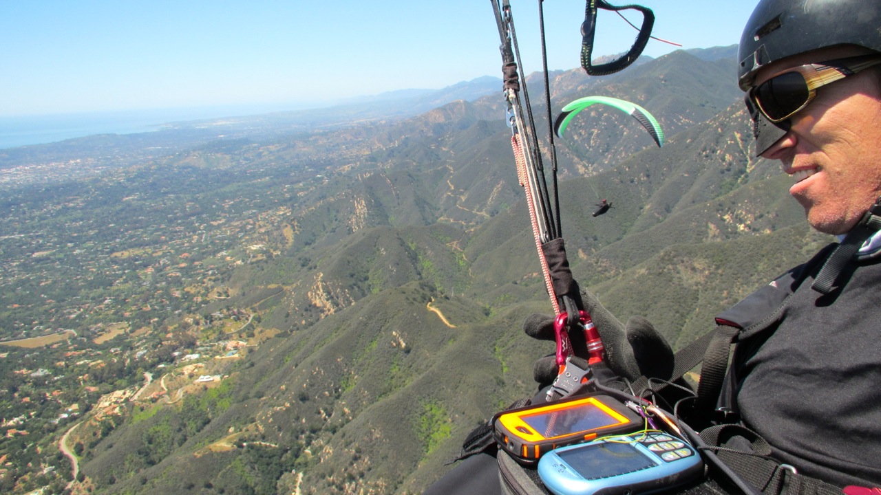 nice cycles at ej bowl. jumped with howser and got to 4700 at la cumbre in strong lift. thought we were going to ojai with that kind of climb right off the bat, but that was the best we got. strong climbs when we could find them on the east faces but it would only get us to 3200 max after thermal factory. lots of scratching low on monticito peak, secret bowl, layer cake and romero. finally got a bit above romero roadcut and flew out to padaro. i love how every day is so different. good times!