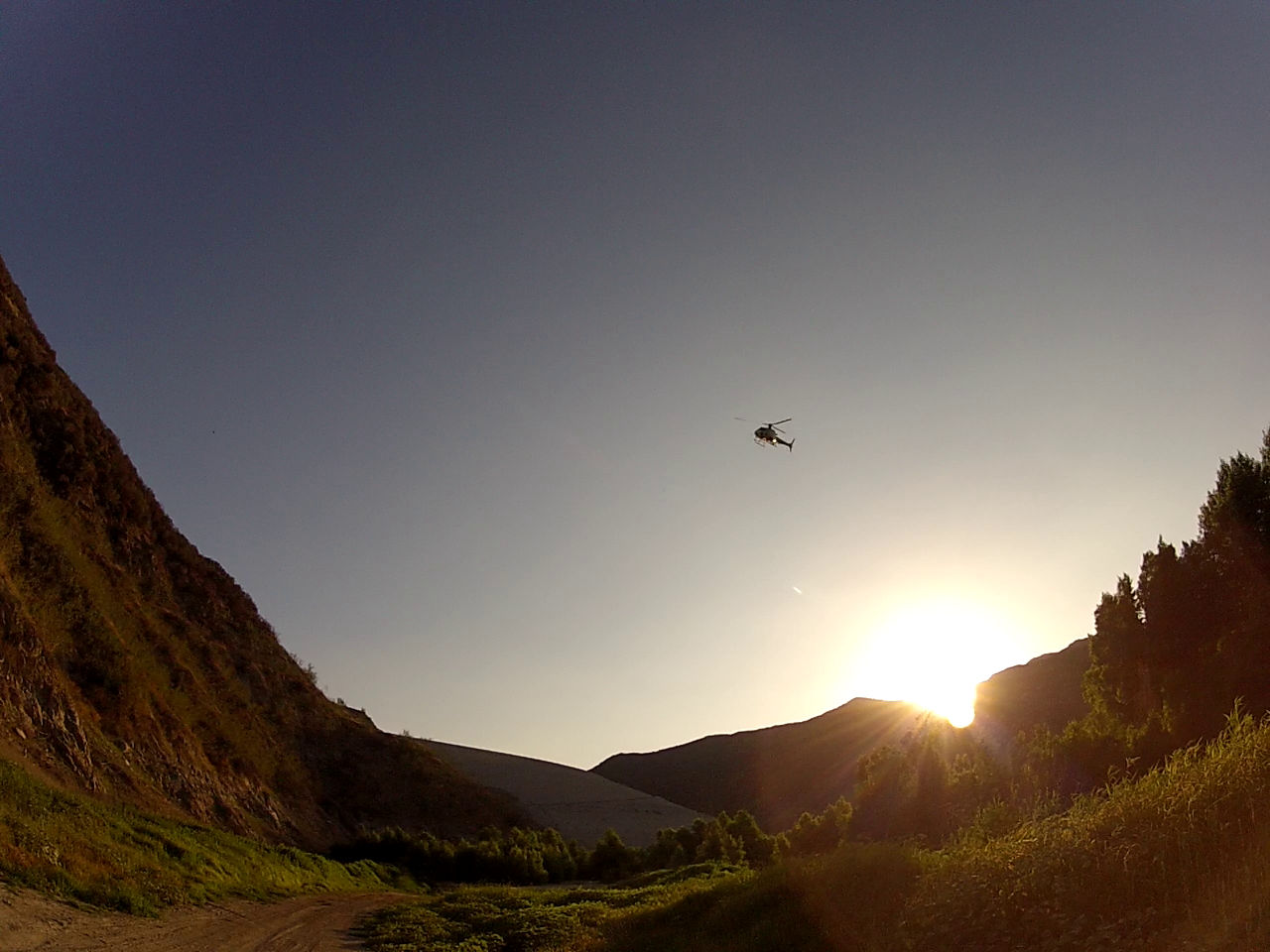 I only had around 5 or 10 minutes before the sun went behind the mountains so the timing was good. I was picked up and dropped off at the Yucaipa helipad. The Pilot was a combat vet who flew Blackhawks. He assured me that the combat was cake compared to flying in the canyons and ravine of the mountains. He had to slip in under the same high-tension wires I avoid while landing and spotted my bag on the road. The pilot and his crewman never saw me standing on the road waving as they flew out toward me. Once I hit the chopper with the reflected sun off of my glass signal mirror then he spotted me. He pulled out his well-worn mirror and assured me that it's one of the best pieces of life-saving gear anyone can carry.