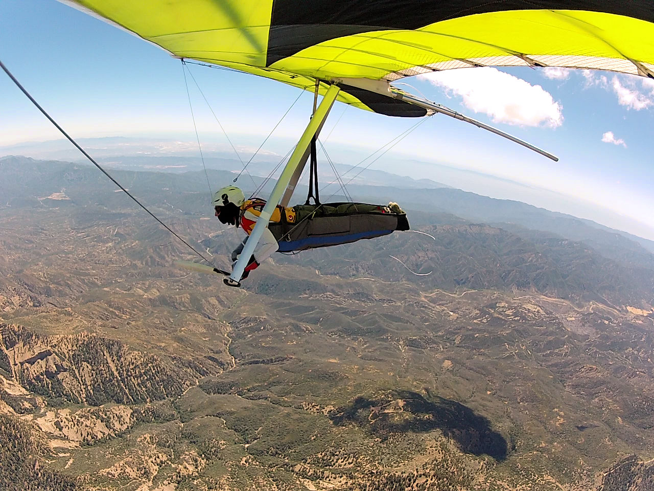 I sank out badly and wasn't even sure I could reach the sand pile. I headed for the worst sink which lead me to the burn area. It was working. I climbed from 5,286' to 11,047' MSL at an average climb rate of 547.9fpm in this thermal as the other 5 HGs on launch watched and counted the revolutions.
