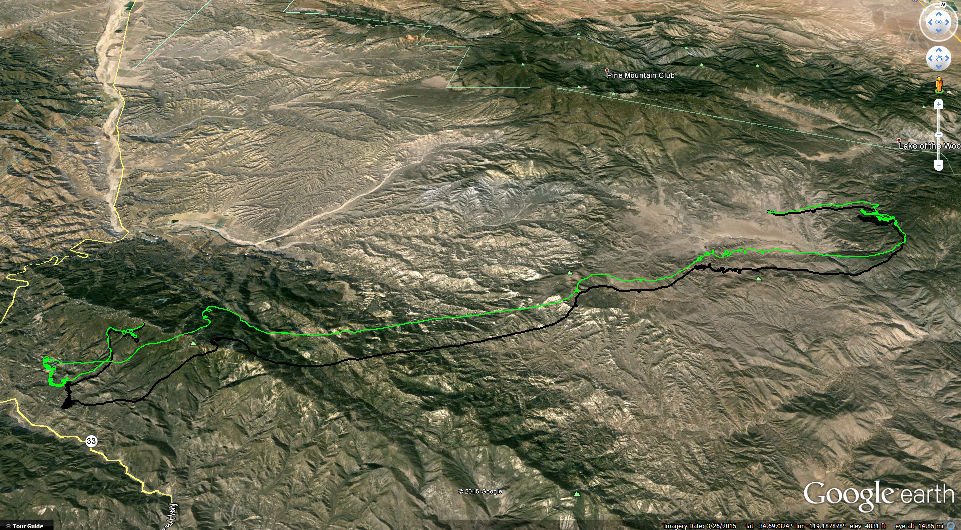 A nice couple en route from Valencia to Buelton stopped to assist me and we threw my gear on their Jeep and they dropped me off at Max's truck on Hwy 33 and the entrance to Pine.