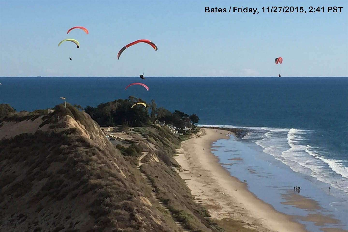 I can't fly today, but am looking forward to tomorrow. Won't be able to get to Ojai to get a permit. Maybe Nuthouse launch instead? Either way an early start makes sense. Yesterday's 10 am meet had us off the hill at 11. We quickly went over 5K and were on course eastbound. Certainly could have launched much earlier. I had turkey day obligations and so turned around at power lines and returned to parma. Chris Heckman continued on to Nordhoff peak and flew back to Bates. I believe Chris Clontz also went over the pass yesterday. Good luck to those chasing it today. I will be ready for an early start tomorrow. Thanks SD for offering to crew. I'll look at the forecast and we can figure out the best plan.