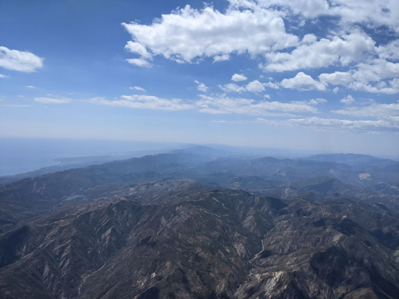 Marion Villenave is a French Astro Physicist doing research for JPL on planetary disc formation after her recent PhD project in Chile (near the big telescopes). Her parents were paraglider pilots. Marion has been flying the Pyrenees Mountains for about 7 years. She is loaded light on a small glider. Marion was off last with a clean launch at 2:34 PDT (8 minutes behind Chris). Marion initially appeared a tad rusty but settled in to demonstrate impressively fluid mechanical control. She did a double pulse above launch, getting 11 hundred over in her first thermal, then exploring out front and tracking back to top about 1200 over in her 2nd core for an easy connection uphill where she climbed to 8K tracking up the 1st spine east of the parking lot. She explored around a bit and eventually went OTB with 7200 (about 700 over the ridgeline), then tracked a scrap drifting from the SW with 6800 that fed into a more vertical core that she rode up to about 10,600 feet. She left the core and continued to climb another 1200 feet on glide south bound, topping near 11,800 feet MSL (about 3600 meters). Marion’s radio was receiving but not transmitting, so she was somewhat alone in an unfamiliar complex environment. Upon reaching the crest of Ortega Ridge with 9200 she opted to turn 90 degrees left because she could see the road off to the east. Getting lower to the east behind Dry Lake Ridge, she was entering the throat of the filling flow, which got worse down lower in the lee behind Dry Lake Ridge. Marion landed at 3:46 in the brush below Hwy 33 just east of the land slide. Fortunately, she was flying with my inReach, so we were able to eventually locate her but had to drive to a location that had internet access to ascertain her inReach location. Andy Switzer had loaned Marion his vario on launch because Marion’s vario batteries were dead. The IGC altitude data from Andy’s SkyBean SkyDrop Vario/GPS had poor altitude accuracy in both Pres and GPS Altitude, perhaps due to the improvised placement? Hopefully Marion will share her perceptions. (Pending?)