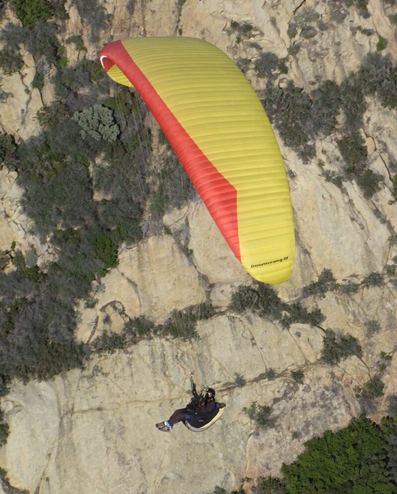 So I got up at launch but couldn't seem to get more than 200 over and every time I started to make a move I'd hit some major sink. After about 25 minutes of looking around and trying to find it, I finally had about 4200 and saw wings getting up at Lacumbre and pilots going on glide from launch and not losing too much on the way. I started toward LaCumbre, staying near the ridge. Once I hit the rock ledge face and got enough incentive from my vario, I started to make a couple of figure 8s and ended up lower and farther away from the ridge. Continuing on, i still saw glider ahead of me getting up, however, I was going down, that awful sink noise. "Mistake number 1."