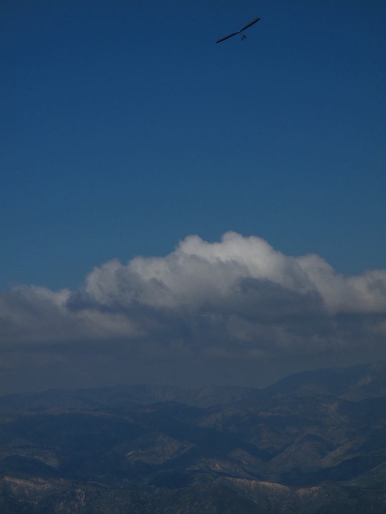 skyport at 9:30 was looking perfect. a little tough getting over launch. over to rr and up to 46 went to thermfact where the lift ended on the east side in the headwind. so we went west. i connected low at la cumbre peak but finally back up to 46. out to cathedral where the lift was booming up to 5k. scenic thermals with cloud topped and edged clear domes. landed at the training hill.