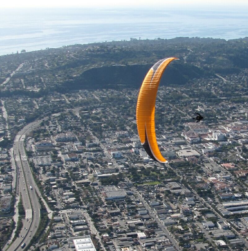 Yea, it looked better on paper, but it was still fun. I haven’t been flying much this year, so today was a treat for me. I blew my launch and my landing today – it was laughable, I’m way too rusty. Maybe I need a little remedial P2 work :shock: I flew with my friend Matt (Farmer) today. We fly in comps together all the time, but this was the first time he and I got to fly together outside of the comp scene. We shadowed each other the entire flight and had a blast. There wasn't a lot of altitude to be had along the range but it was fairly buoyant, and you didn't loose a whole lot on the crossings. Once we got down to the power lines it was obvious the North winds were going to be a problem going through the pass, so we made a 180 and headed back. On our way back we ran into the rest of the gang. Some took the glide to Padaro, as Chris mentioned, and some headed back with us. Marge was part of that group and she was flying great. She said to me later that this was her first out and return flight. Nice flying Marge. Matt and I polished off the flight with a glide to East beach…sublime. There’s nothing like going hands-up, relaxing and enjoying the stellar view all the way to the beach – sweet! Days like today remind me why SB is one of my favorite places to fly. Good to be back in SB.
