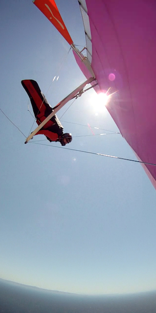 Trying to hook up with Nikolas, a new student, and show him what a Hang Glider looks like when it leaves the earth from a small turn out off of Gibraltar Road. How many times have people driven by similar turn outs all over the world, and had no idea about what kind of life lives just over the edge.....Some people find themselves at these kinds of places and just stand there with the sun and the wind in their faces....just completely at ease with the thought of going over the edge. There must be some common thread in all of us... the ones who have had that similar flying dream since they were kids...So my question...?what is it, in some of those people, who actually find a way to make that dream come true...to pursue the life that lives....over the edge....