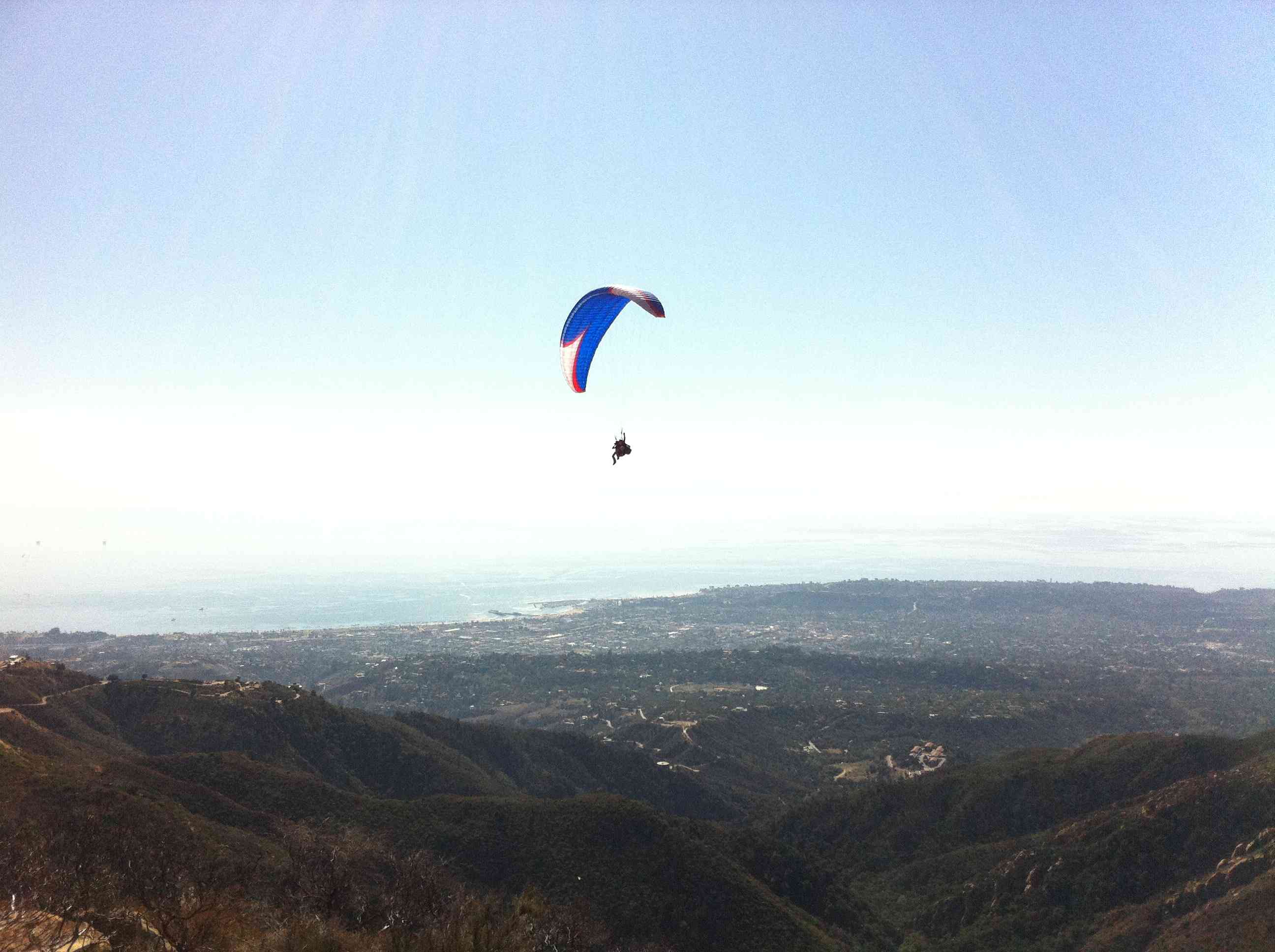 Oh yeah, sweet flying weekend! Had nice fishbowl flight between the RNR, Skyport, and Thermal Factory Saturday, then out to the beach to join the crew. 3800' a few times...took a few pics, a few of jon and kevin and redtail. later rode my bike from the Mesa to Parma for car retreive and exercise. Sunday was a bit better until the high clouds came in...I got decently up over Skyport and felt out the nooks and cranies of the East side of RnR while following lots of swifts intermittantly gliding and boosting up between spines. Low over the saddle, just below the rocks I connected nicely and got to climb out with lots of folks. Chris marked a nice thermal tracking in from the SE, just E of the saddle, we took that over 4k'...I left to EJ bowl and milked the ridge lift while chasing more swifts over to La Cumbre to join Aaron, easy figure eights up the face and over the top. Aaron left I stayed and it seemed to come together and reside, come together and reside up to 5k' - woohoo! Turned toward Alternator with a solid 13mph tailwind from the East...connected in front, thanks to a redtail marking the spot. Climbed back up to 5.1k'. Turned to No-Name. The clouds were in and everything was shaded...no lift over No-Name - should of taken the clue...no lift over the VOR, top of the spine to bottom...went to No-Name (since it was SW low) out front, skimmed bushes and maintained at 2500' for too long, some sun poped thru I was making progress but it shaded in again...I left for West Bowl and ridge soared it to the center spine, and got that sinking feeling...over the lines and out to Cocopah for a smooth landing. Left my dead battery cellphone in the car at launch...decided to walk home...Chris picked me up at Los Positas and Modoc. He offered to drive to launch to retrieve but I really needed to complete my detoxification program so rode from the Mesa to launch to pick up my rig. Nice sunset scary ride. 8)