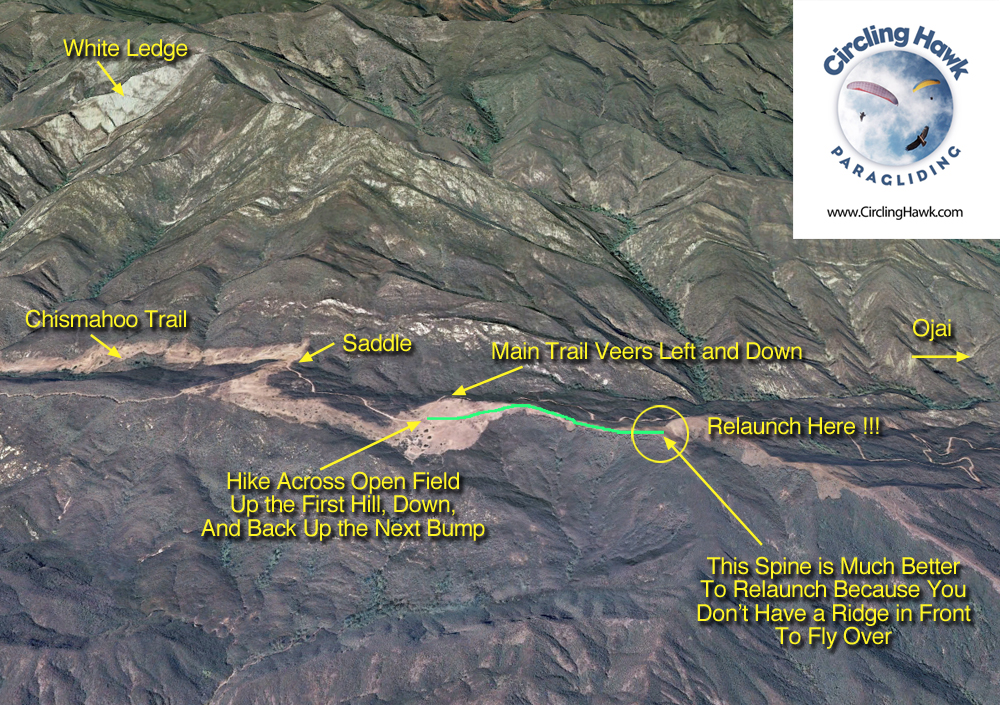 It's very natural to try to fly faster through a section that is making you nervous. Not having a trail below you can push your emotions to want to get to the trail ahead. So from the Powerlines to the next real trail - Chismahoo - there are some big crossings and there is nowhere to land. If you decided to travel on past the Powerlines, it was probably because you believed the day was working and you were getting good heights. So try to slow down and work the spines and take your time between the Powerlines and White Ledge. It's a tough lesson to learn and I've had to relaunch a number of times. I've found my favorite relaunch and now you know where it is. Print a copy of these maps and put them in your harness if you are new to flying through the gap. I'm also available for Cross Country and Thermal training.