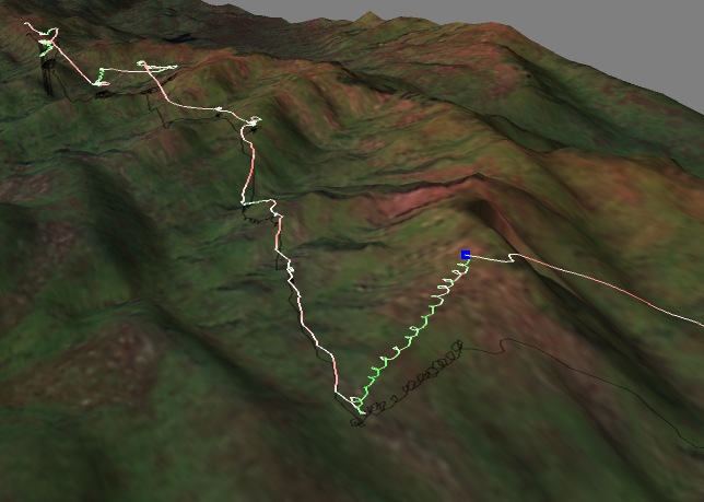 Topped at 5k, 3hours & 55 minutes. 32 miles. My GPS doesn't store that many trackpoints so you're not gonna see the TF->Montecito->Powerlines stuff.