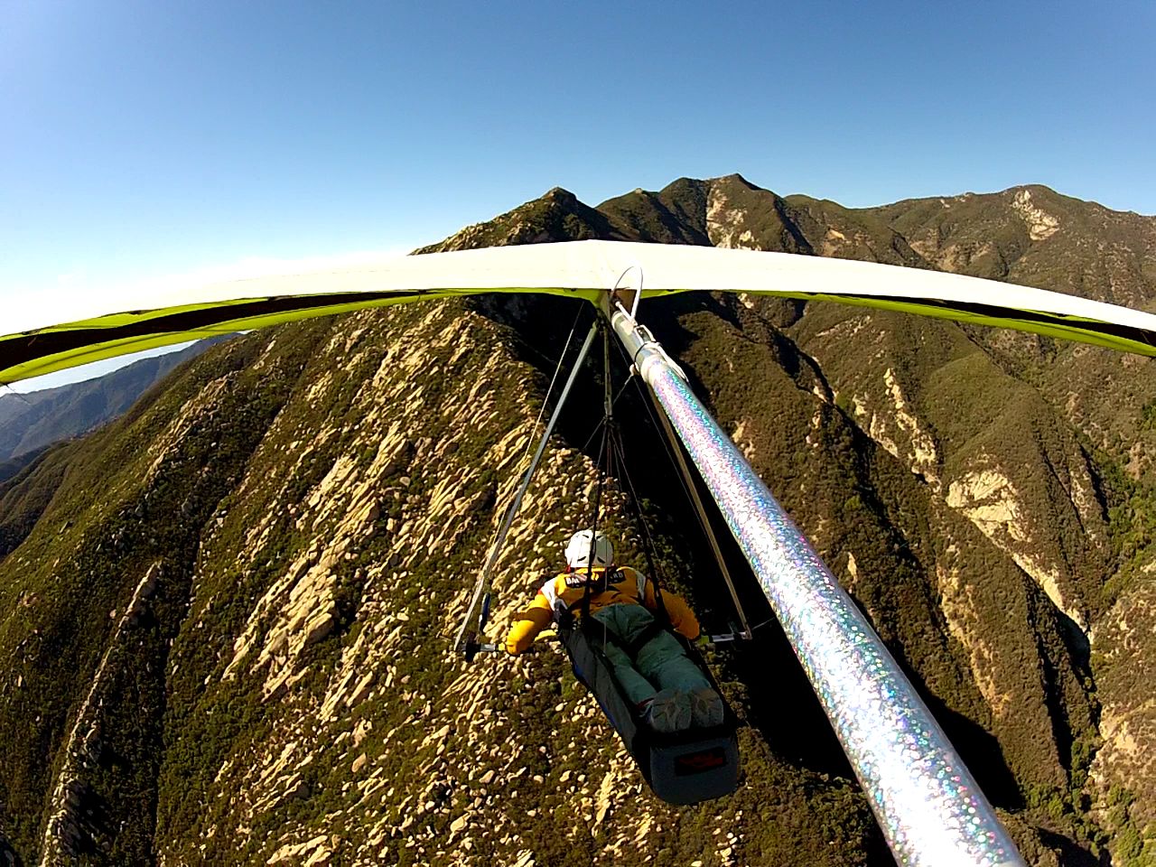 looking eastbound from the pass, Tom flying tandem w Peter