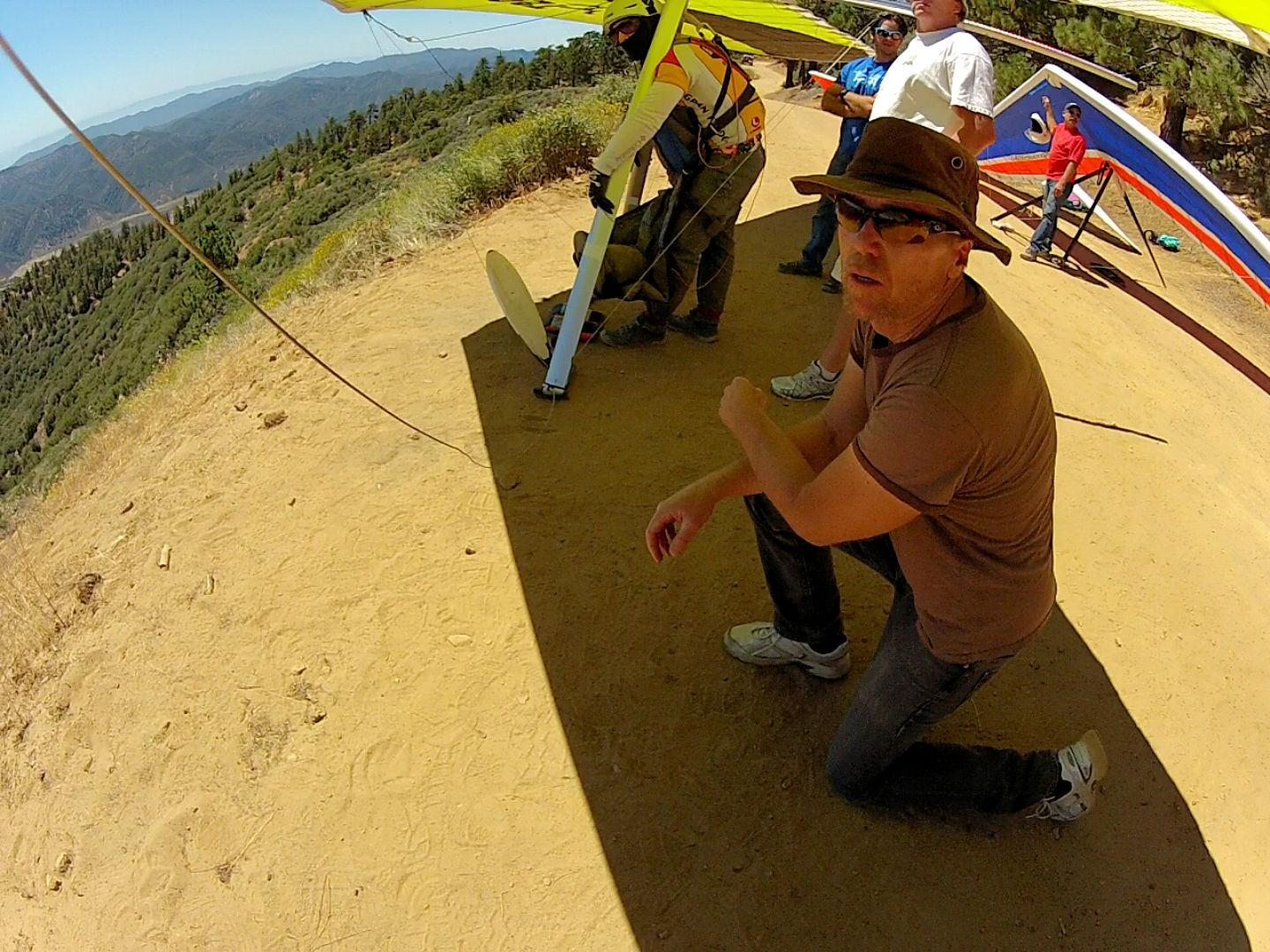 Max and Mike had "to die for" flights - great job guys! Myself and TQ were the ones that didn't launch. Eddie and two nice people helped get Edwin out of his harness and up to the road so the chopper could pick him up - one was an ER nurse, as luck would have it. I'm almost glad I didn't launch, because it was really unpredictable and switching all directions. Several more dust devils blasted thru as I was breaking down my glider - I still have grit and sand in my teeth :-)
